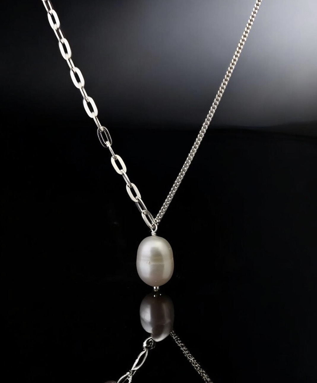 Freshwater pearl pendant with asymmetric chain