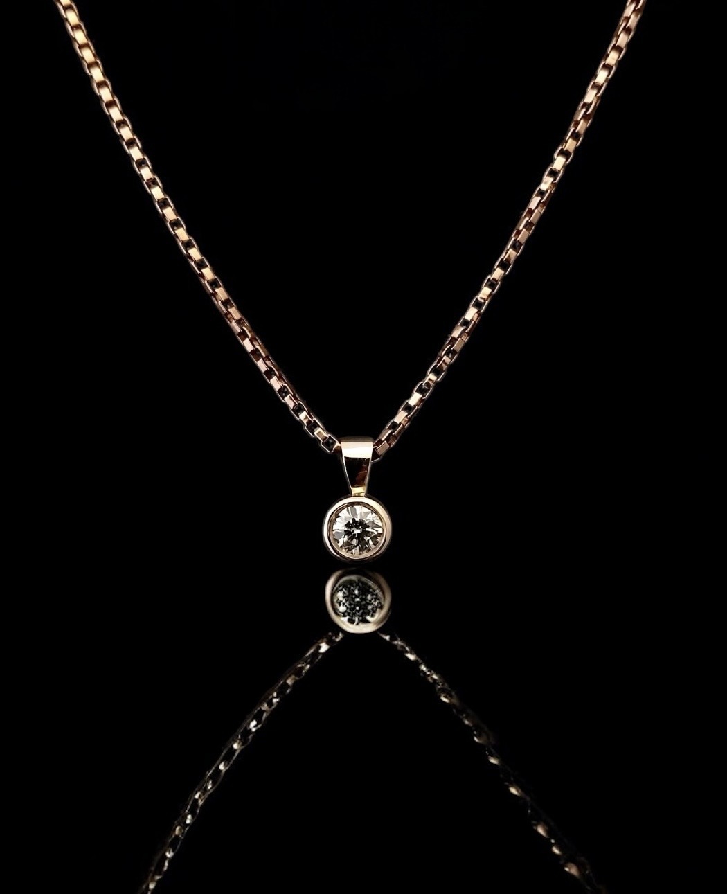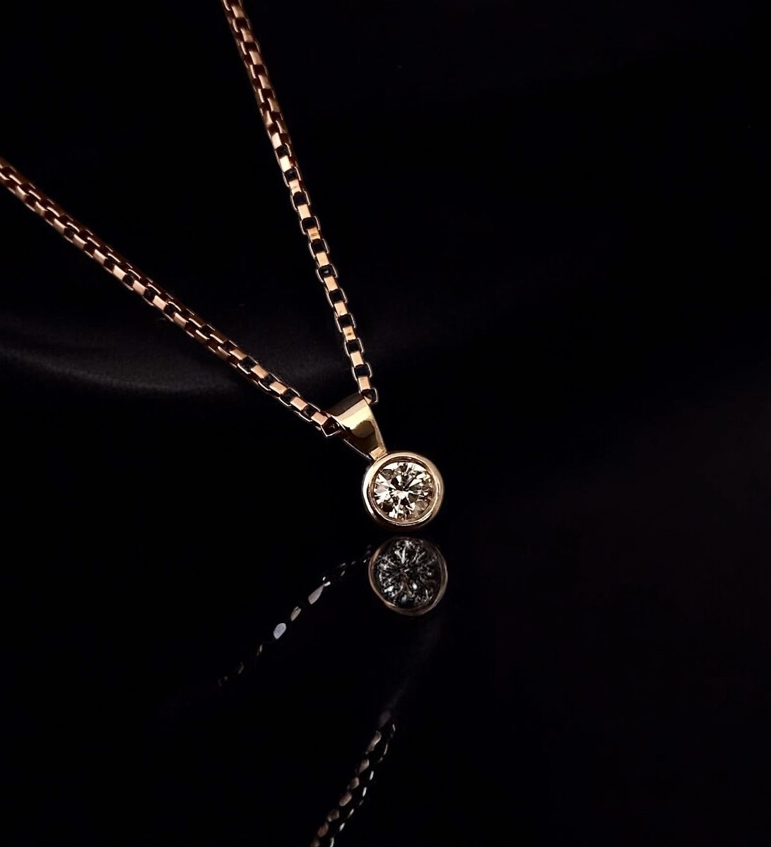 This diamond solitaire pendant is handcrafted from solid 9ct yellow gold.