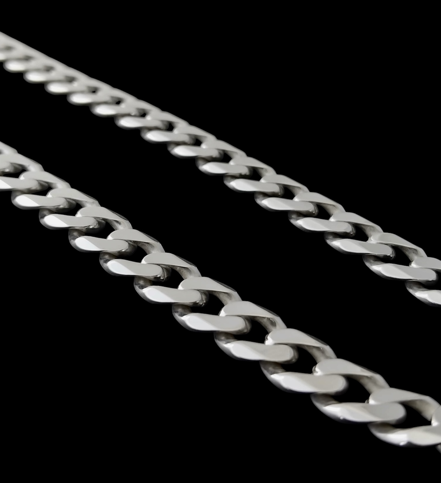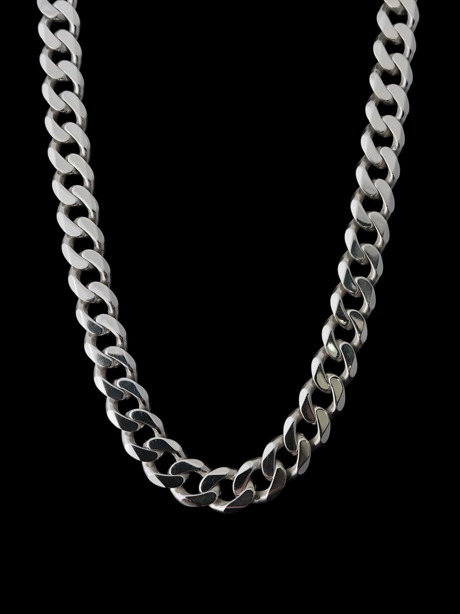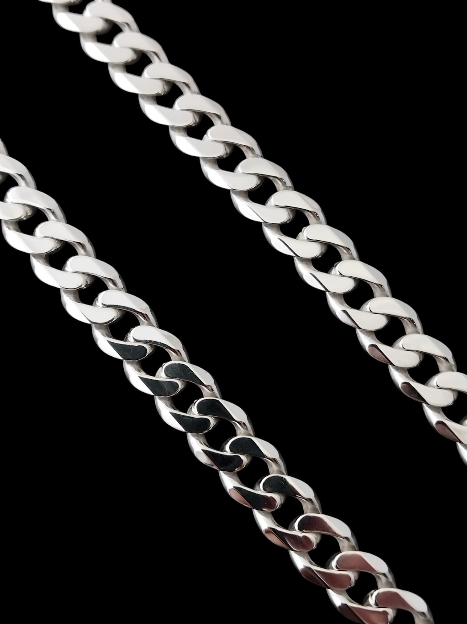 This 10mm, sterling silver diamond cut curb chain is a timeless classic.
