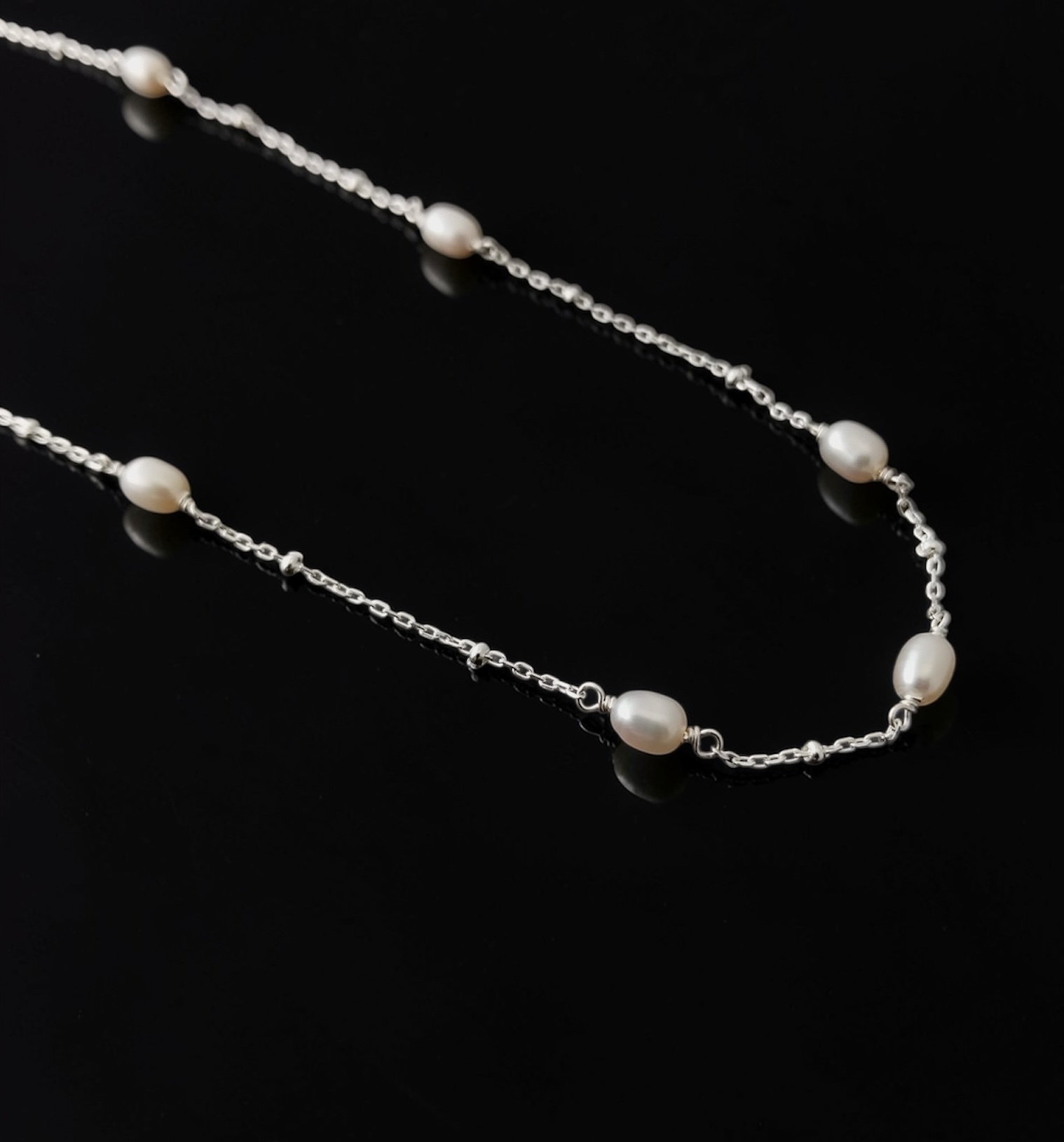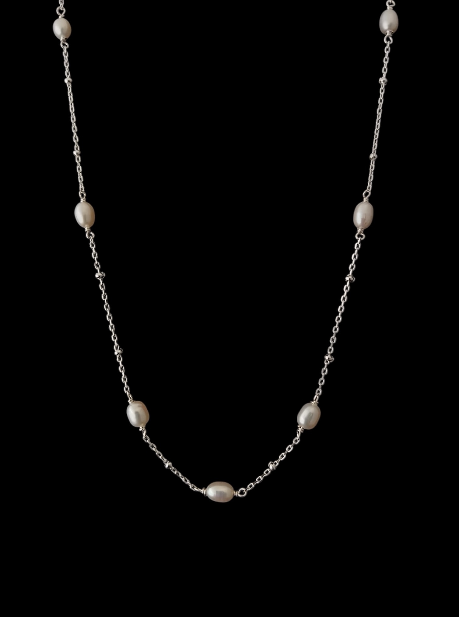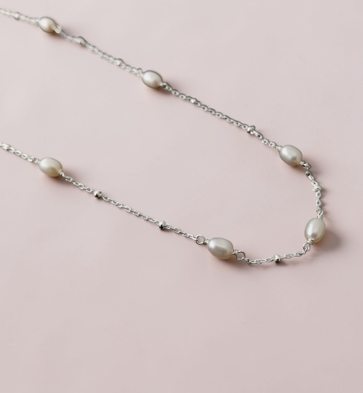 Said to bring wisdom and knowledge, this delicate freshwater pearl necklace with silver beads makes the perfect gift for those born in June with pearl as their birthstone. The feminine design makes this chain a beautiful choice for bridal jewellery or as a special pearl wedding anniversary gift.