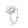This sparkling diamond halo is set with a 0.60 carat natural oval diamond at the heart of the ring. It is surrounded by a halo of 18 round brilliant-cut claw set diamonds.