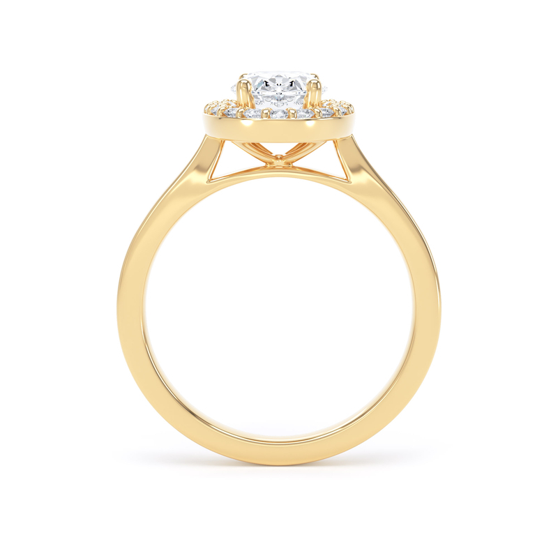 Diamond halo and shoulders have a total diamond weight of 0.20ct.