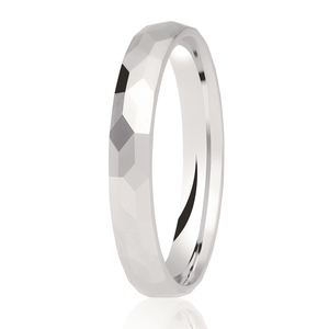 Handcrafted to last a lifetime, this 3mm wide, court profile wedding ring has textural diamond cut detailing.