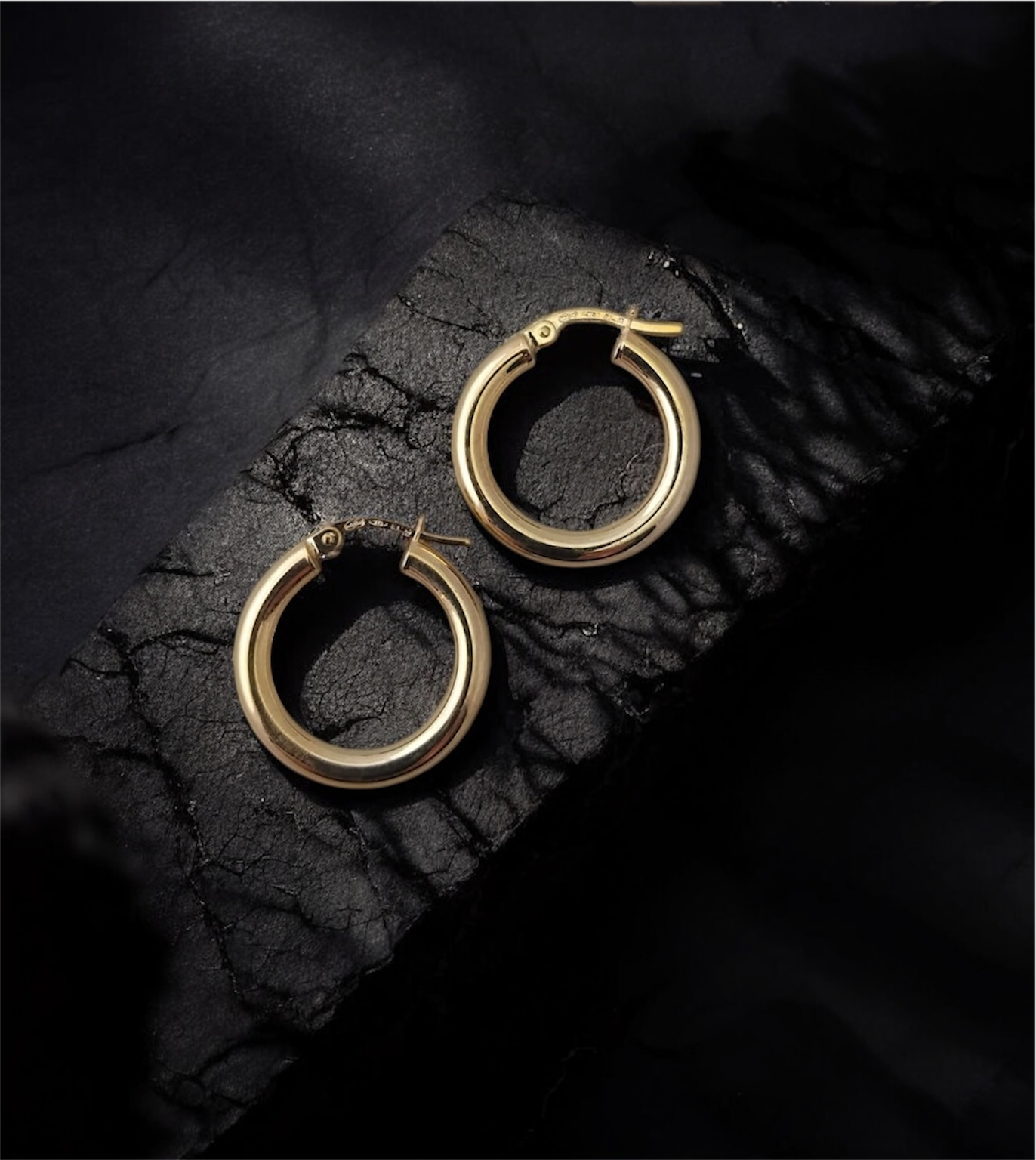 Earrings measure approximately 2.8mm wide and 22mm in diameter.