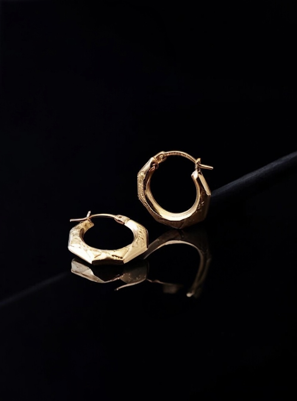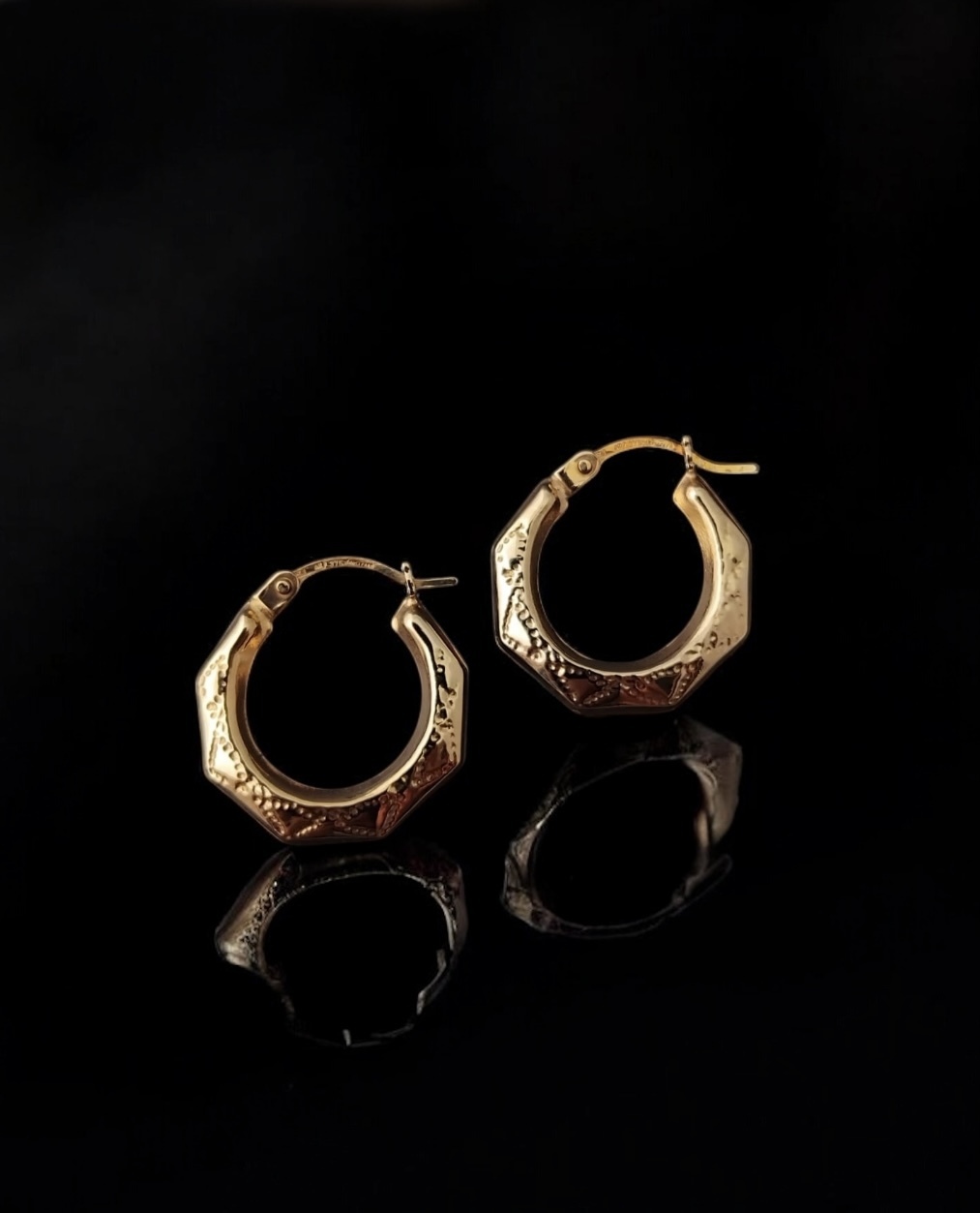 9ct gold heptagonal creole hoops with diamond pattern