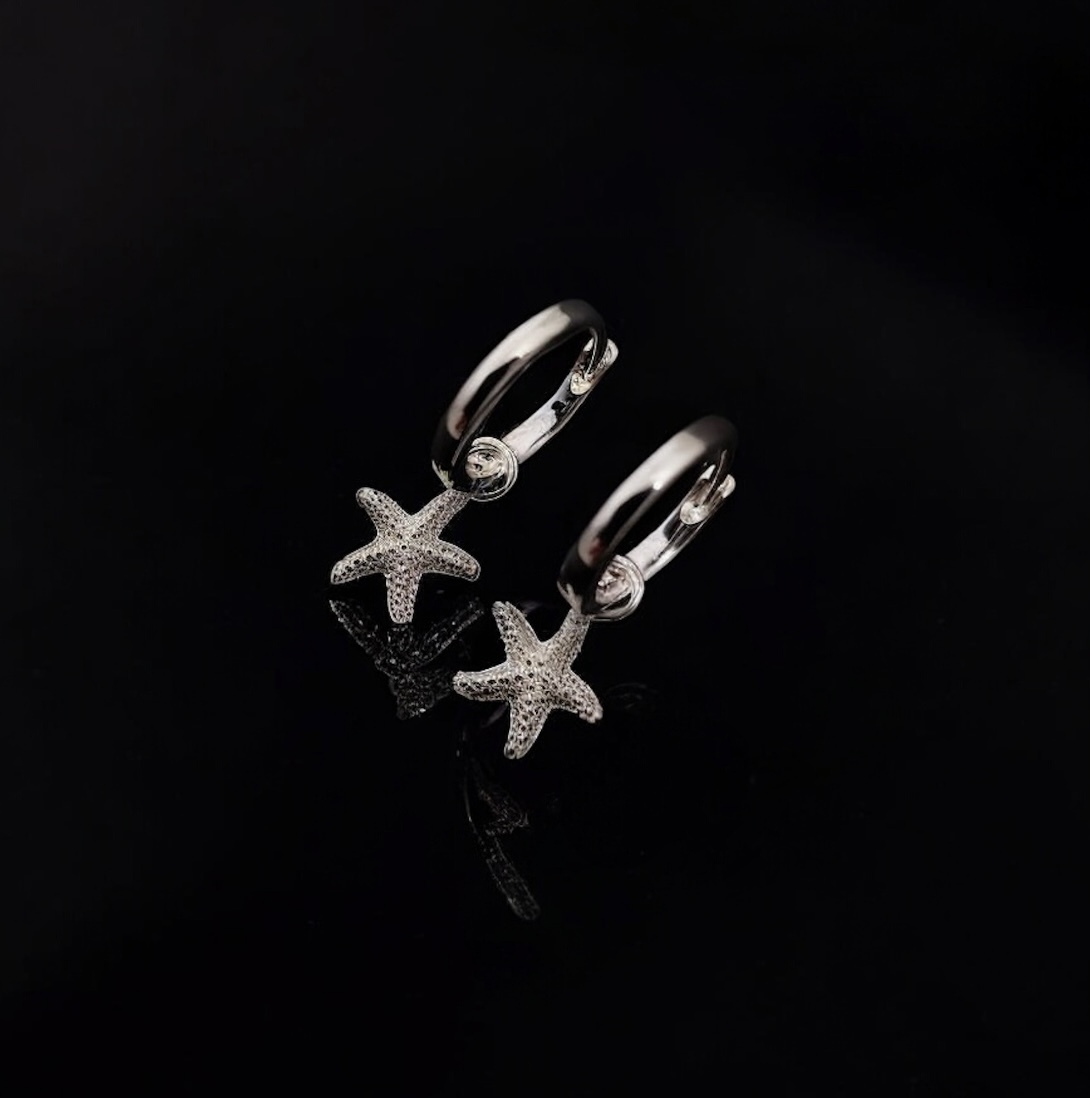 Sterling silver starfish hinged huggie earrings