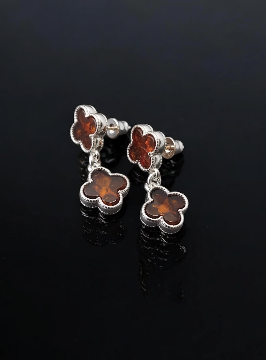 This stylish, sterling silver quatrefoil drop earrings are set with Amber and framed by a decorative beaded edge.