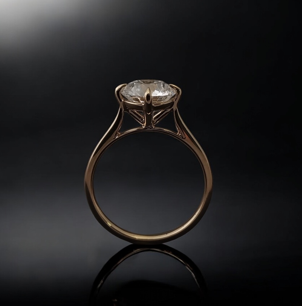 The lab-grown diamond is set in a four claw setting. The claws are set at North, South, East, West orientation, making this engagement ring the ideal choice for someone with wanderlust.
