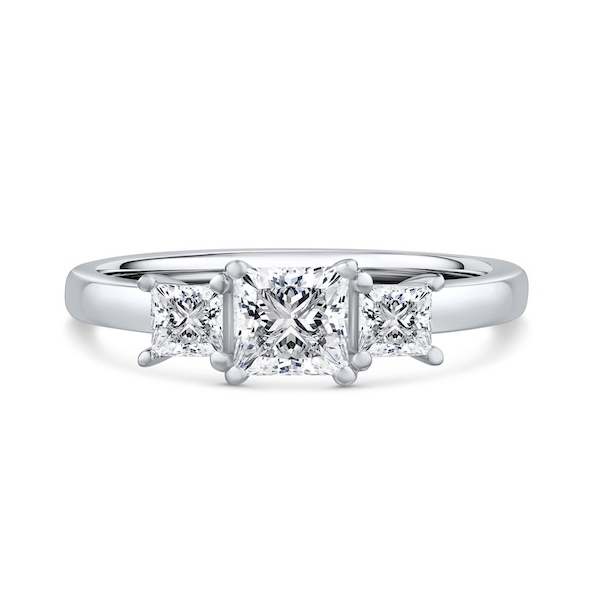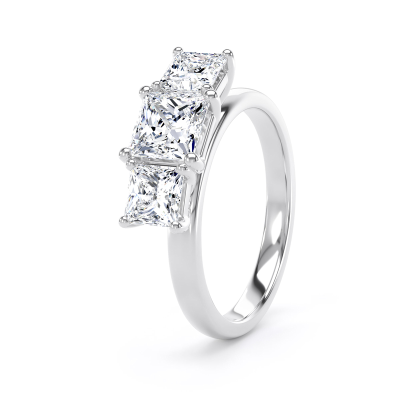 This graduated princess cut diamond trilogy ring is a timeless design.