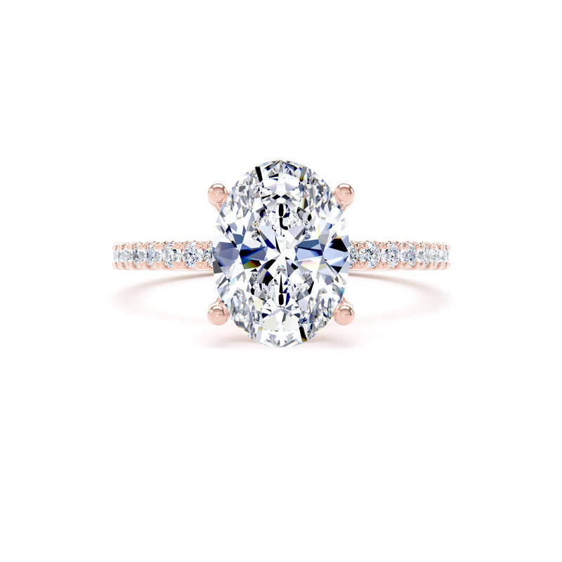 A 0.88 carat lab-grown oval diamond is at the heart of this engagement ring.
