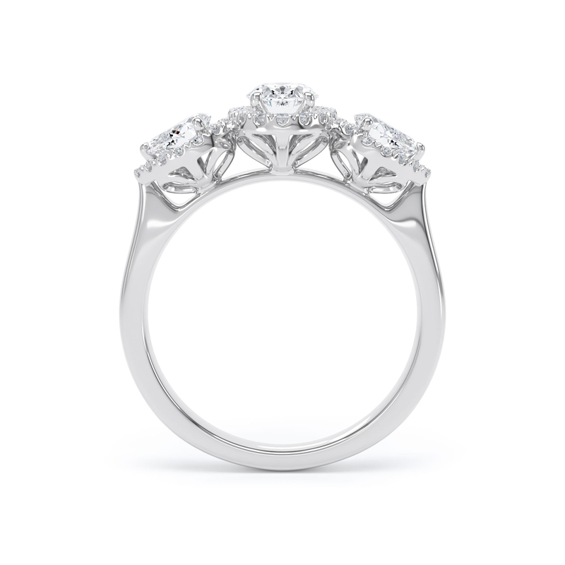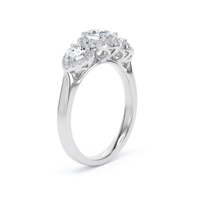 Oval and pear halo trilogy ring