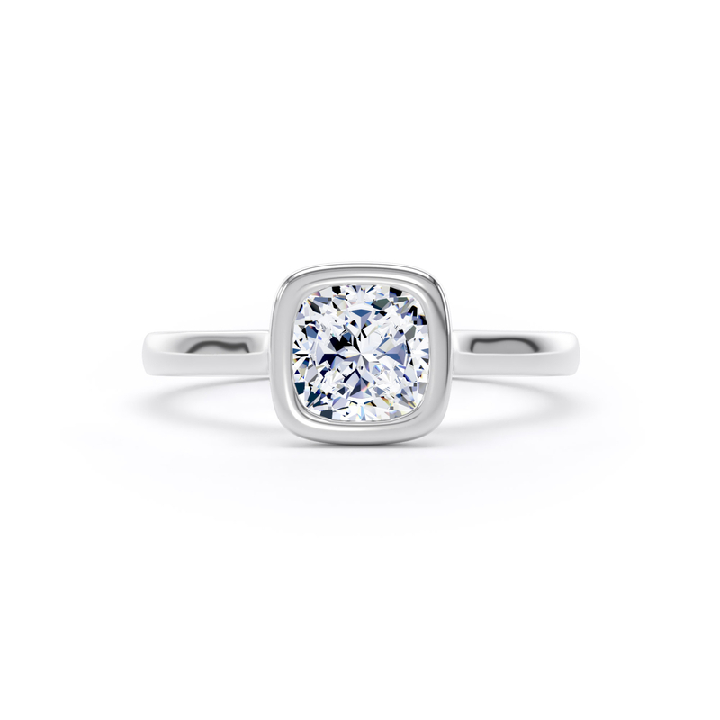 Cushion cut rubover diamond solitaire