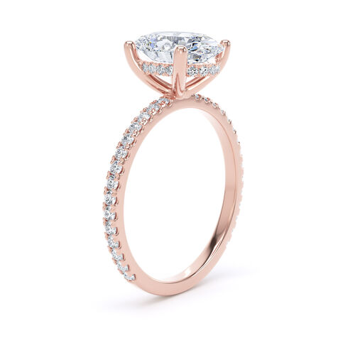 Oval solitaire with diamond set shoulders and hidden diamond detail