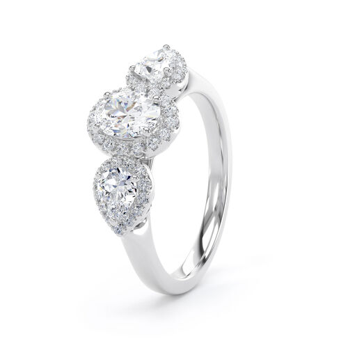 Oval and pear halo trilogy ring