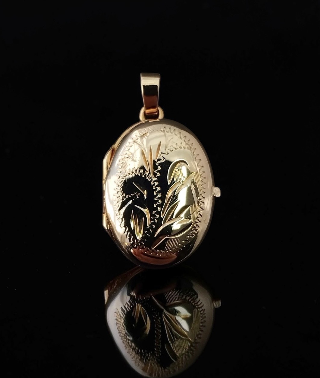 This oval shape, traditional engraved floral locket is a timeless keepsake.