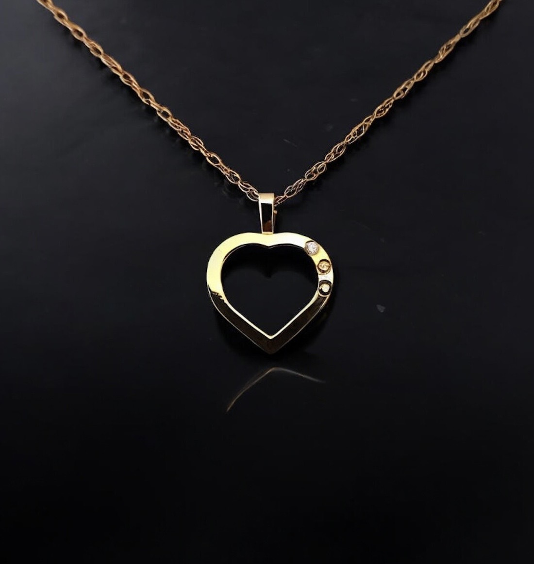 The 9ct gold love heart pendant measures approximately 17mm from the top of the bale to the bottom of the heart by 13mm wide.