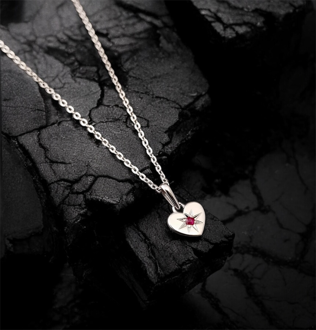 The star set ruby sweetheart pendant makes the perfect gift for those born in July with ruby as their birthstone, or simply for someone special.