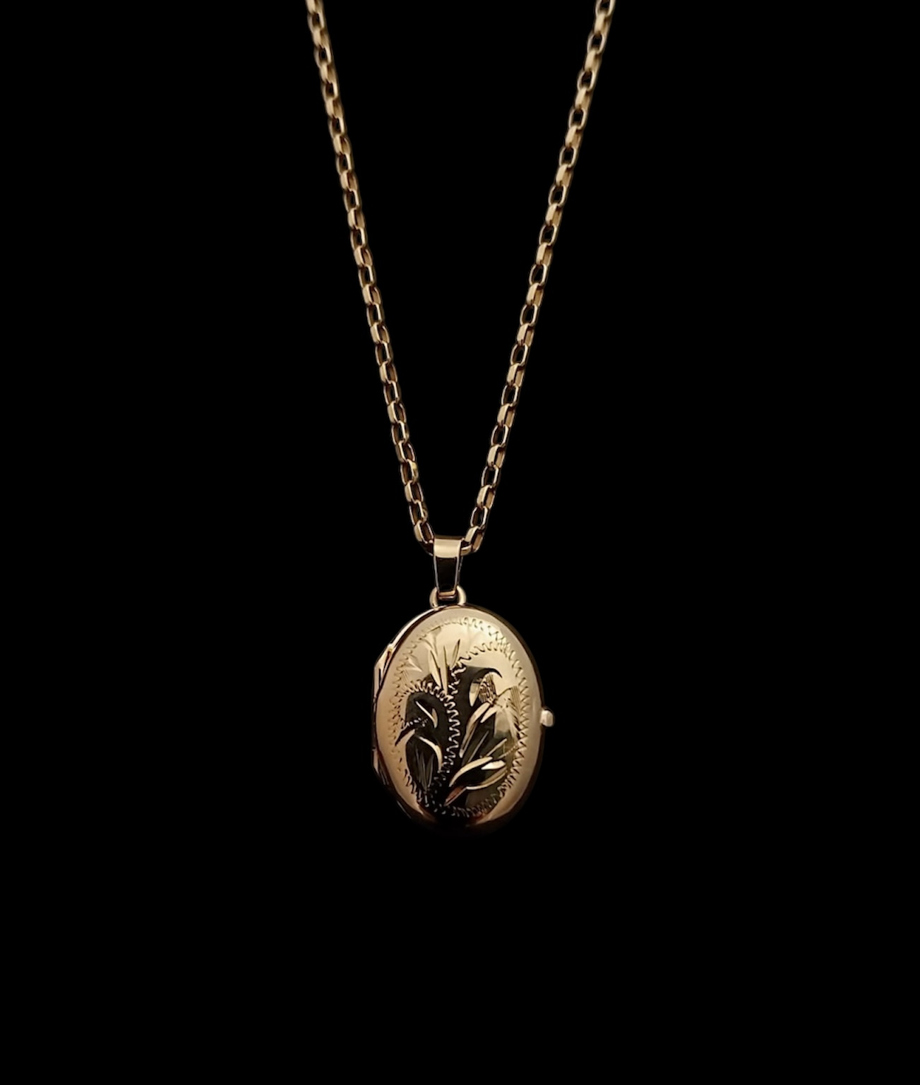 9ct yellow gold engraved floral locket