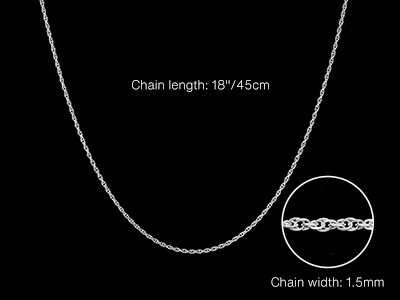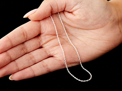 The interlocking links of the rope chain are approximately 1.5mm wide.