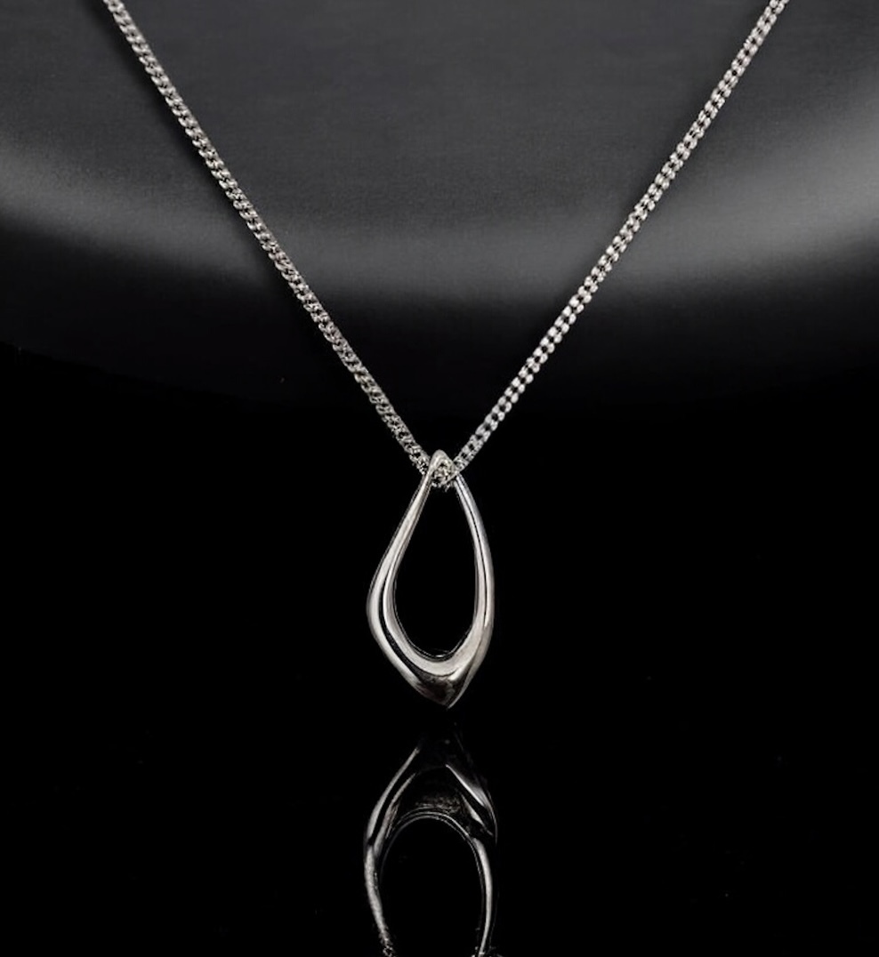 This highly polished sterling silver scandi pendant has a fluid and organic shape which oozes effortless Scandinavian style.