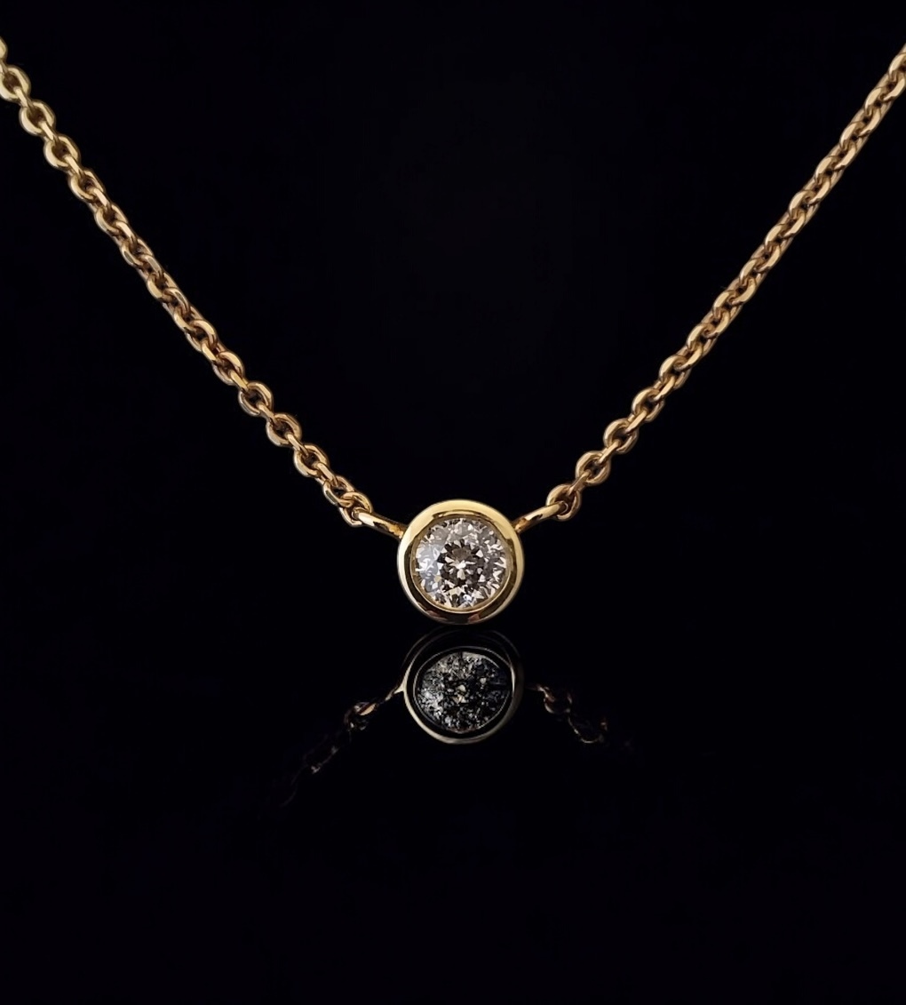 The front of the necklace boats a beautiful 0.30ct natural diamond set in a secure, rubover setting.