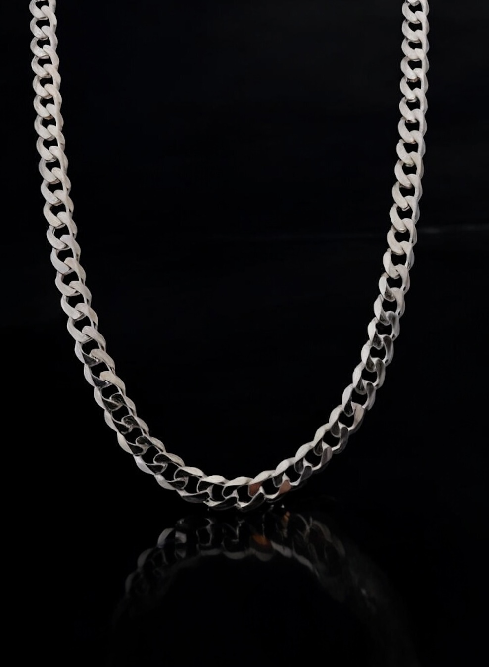 This sterling silver diamond cut curb chain is 5.4mm wide, ideal for wearing alone or wearing with large size pendants.