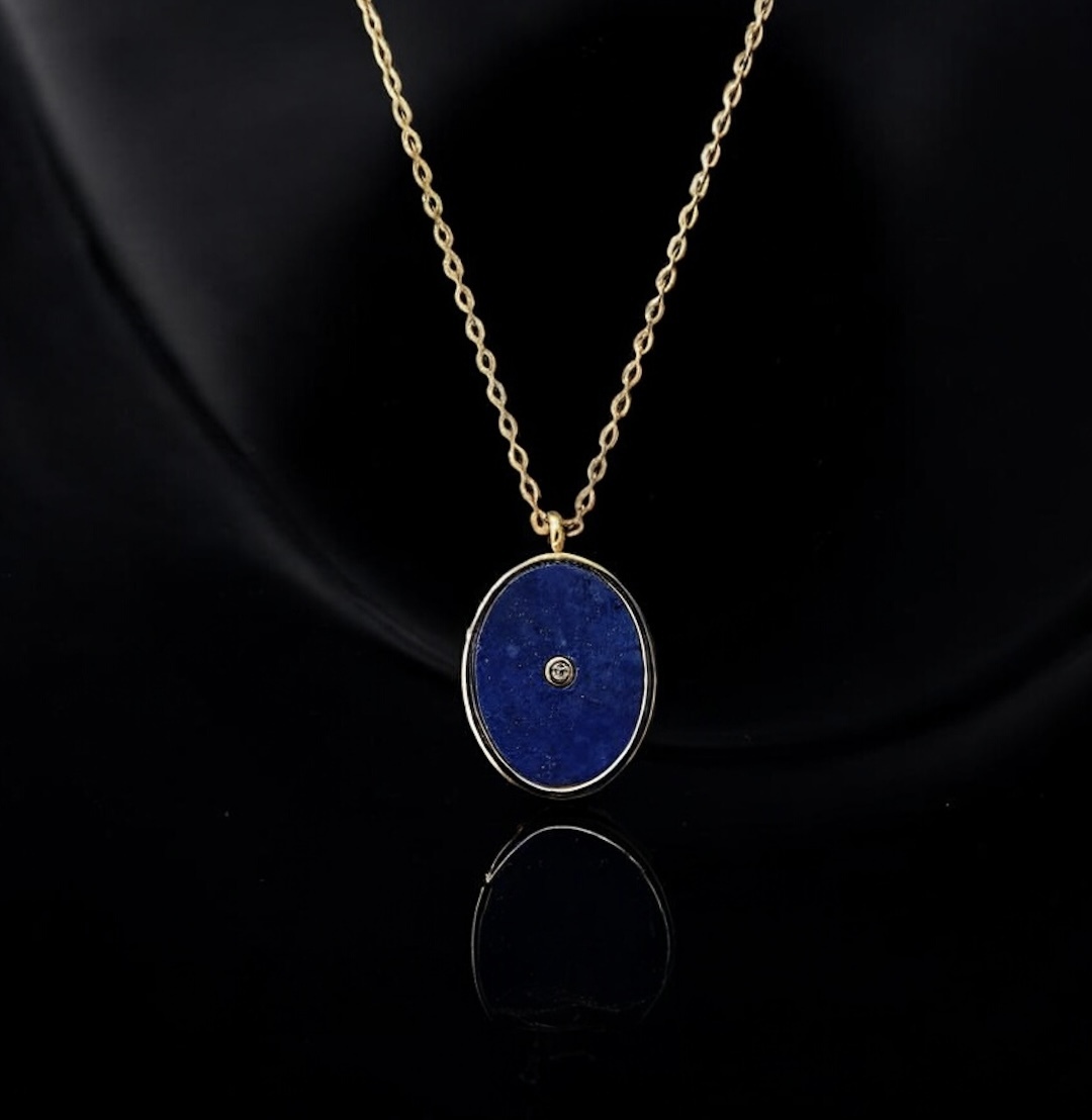 Lapis Lazuli and cubic zirconia locket
