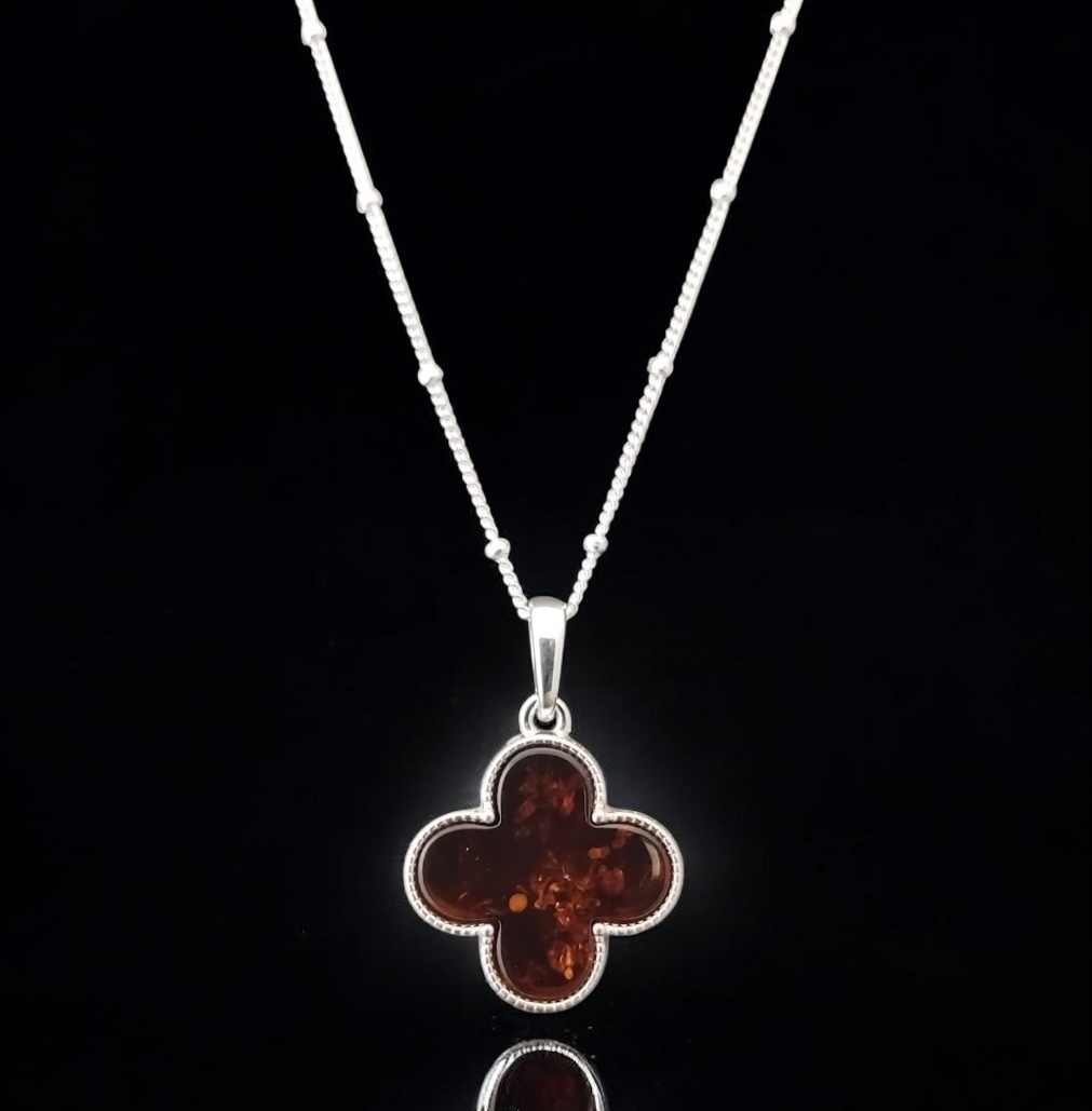 Amber quatrefoil pendant in sterling silver