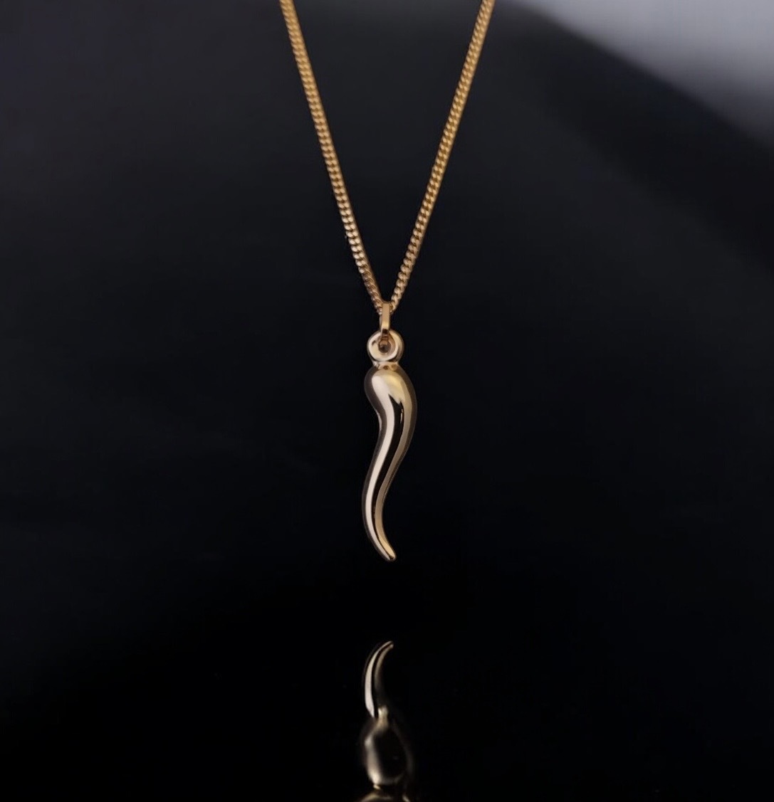 This 9ct yellow gold Cornicello pendant is a symbol of good luck and protection.
