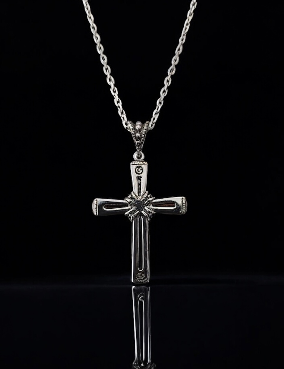 Cross pendant comes with a solid 18" sterling silver diamond cut trace chain.