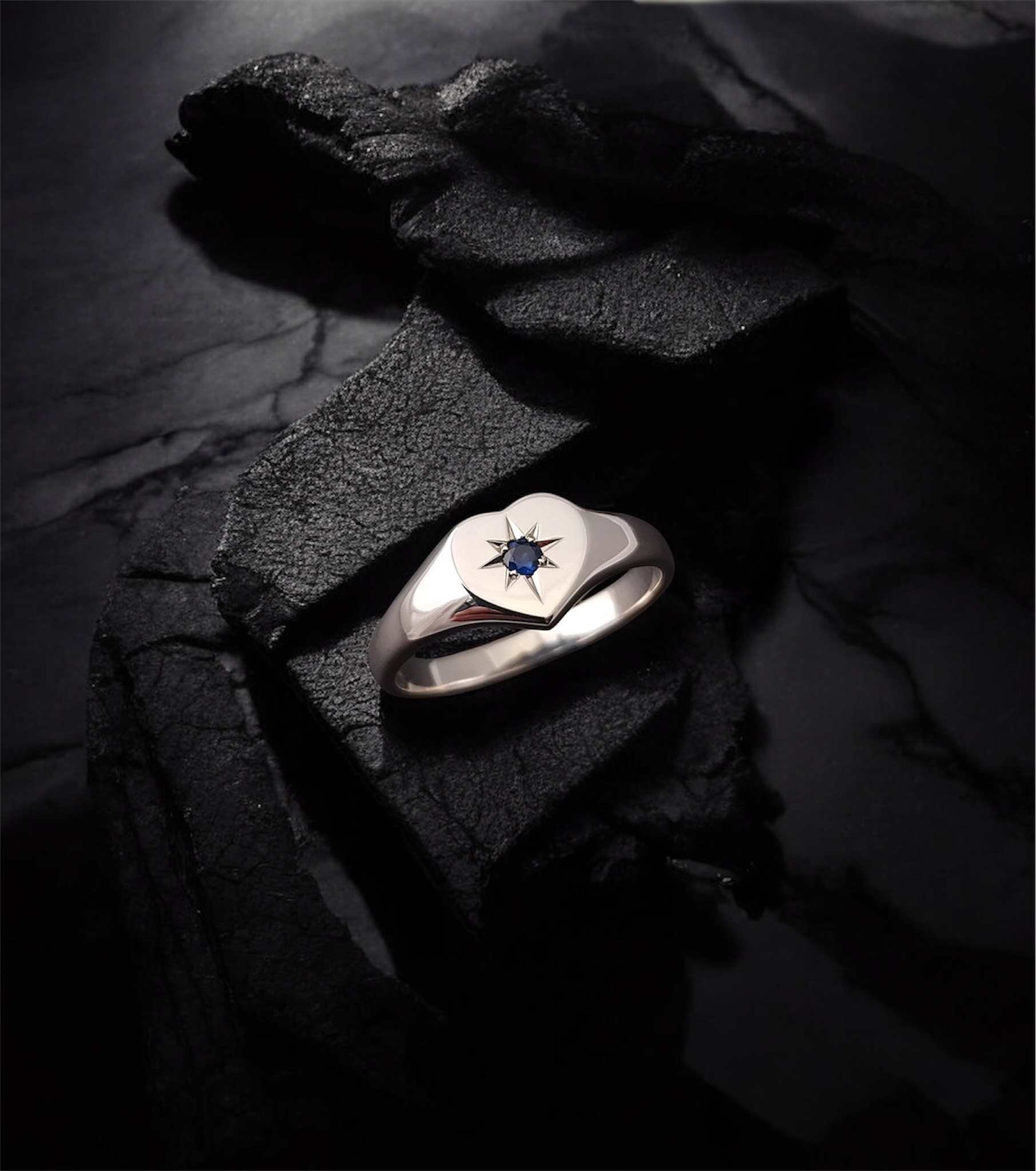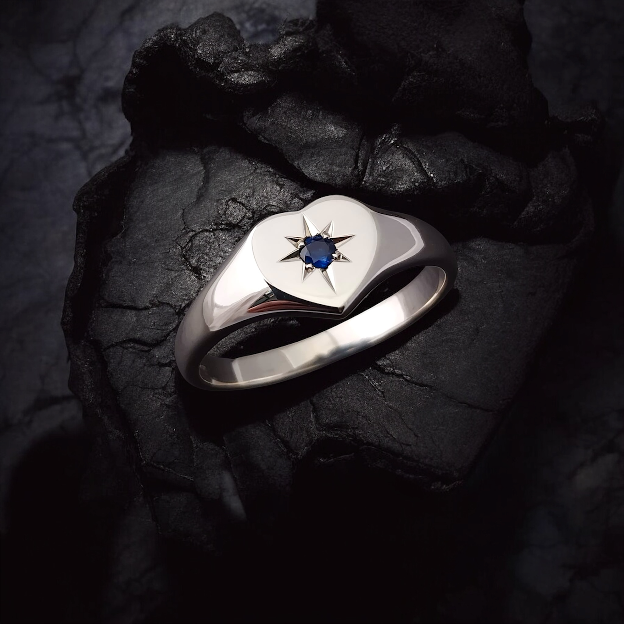 The star set sapphire sweetheart signet ring makes the perfect gift for those born in September with sapphire as their birthstone, or simply for someone special.
