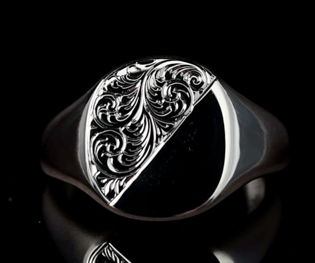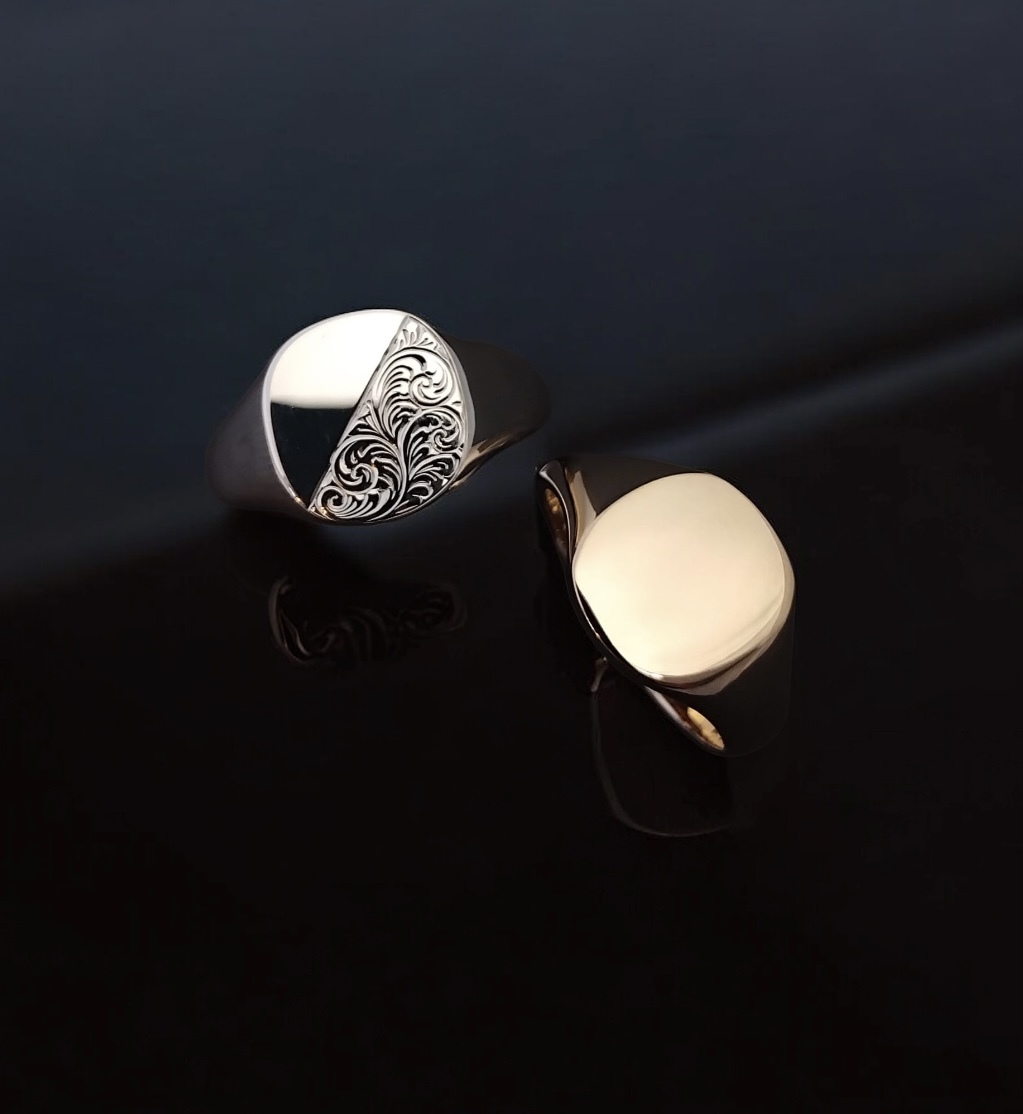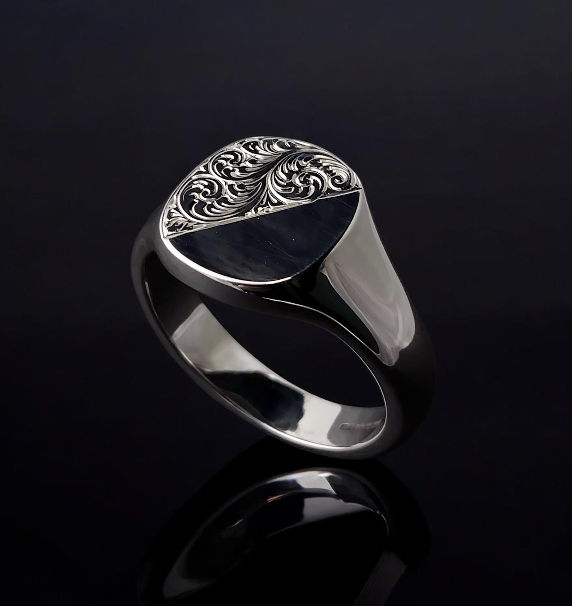 The subtle nuances and distinct flourishes of the hand-cut scrollwork mean there is truly no other signet ring like it.