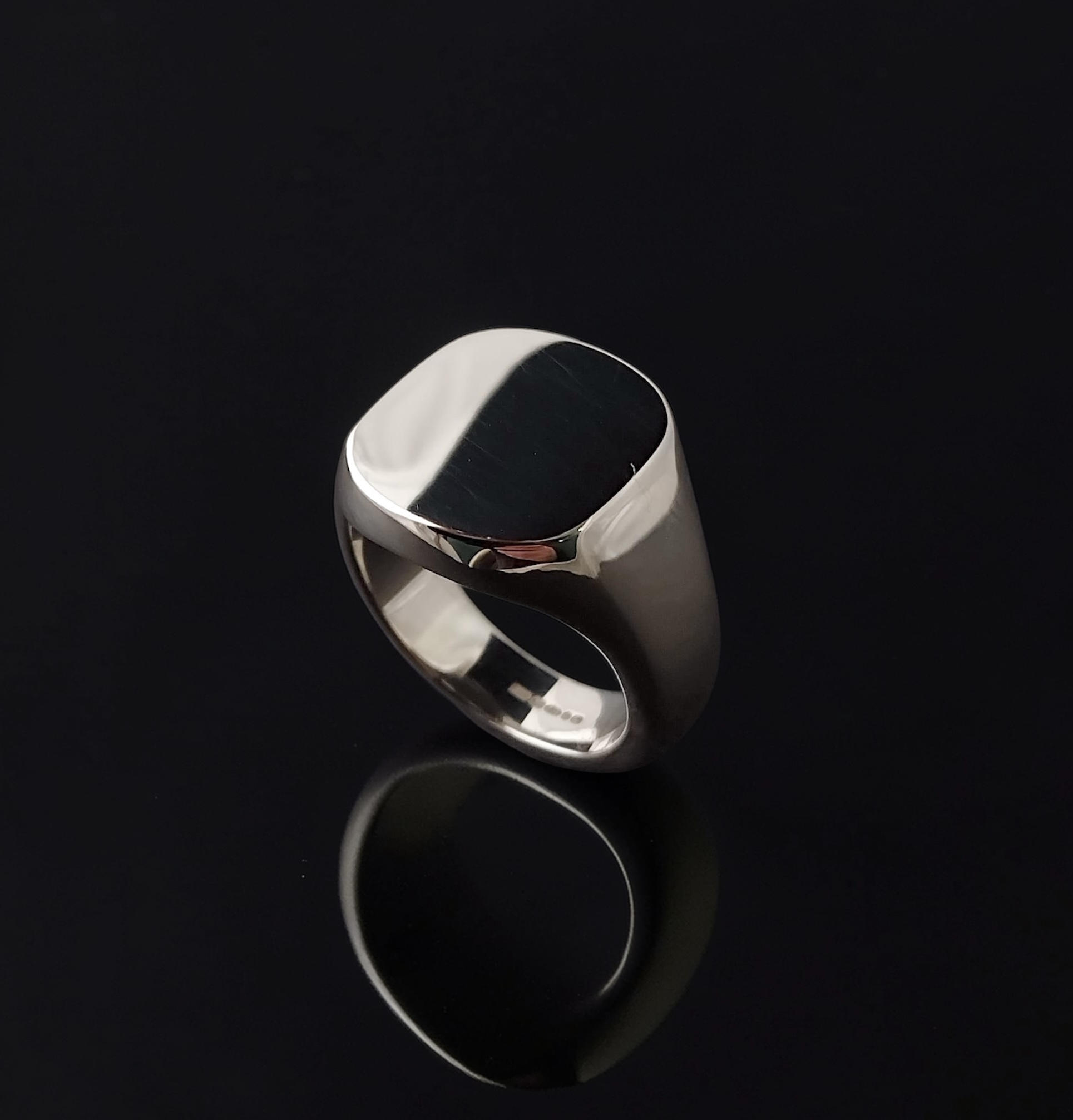 Hand forged in our workshop from solid sterling silver, this cushion shape signet ring is a timeless piece of heirloom jewellery.