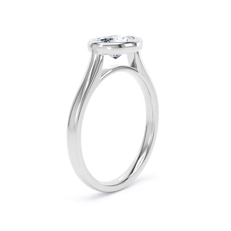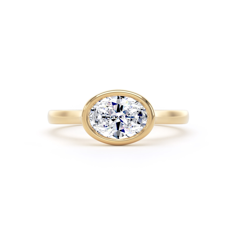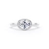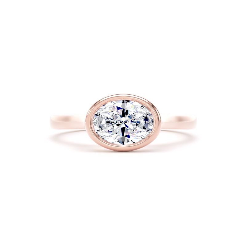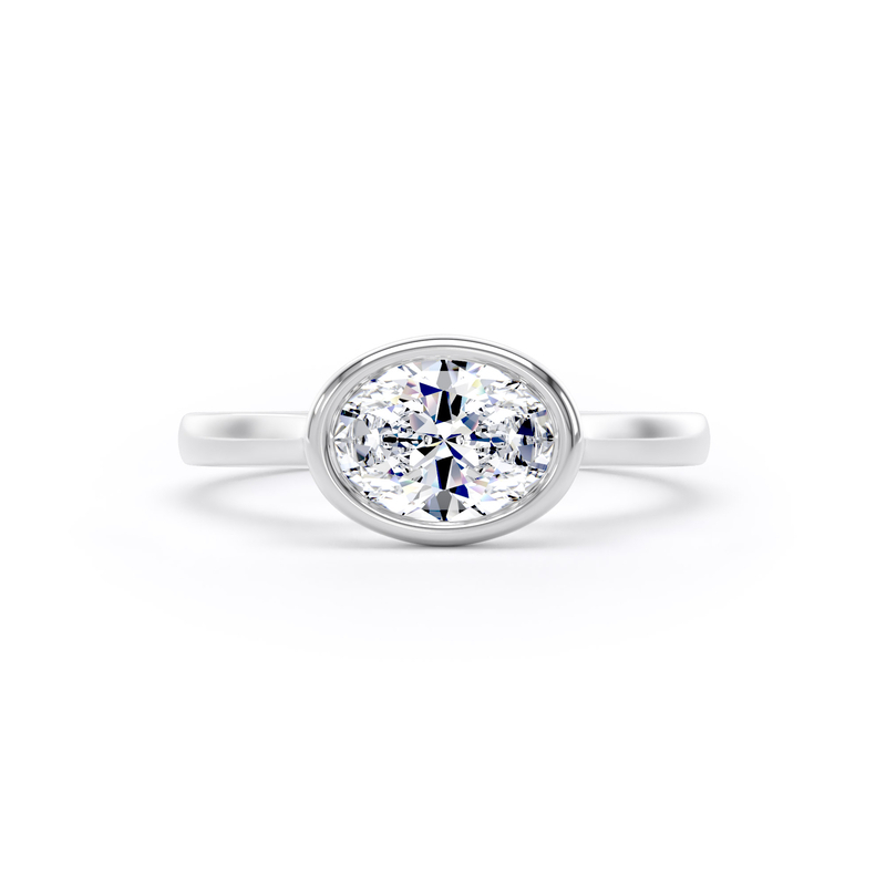 Set horizontally on the band, this oval diamond solitaire makes a striking choice engagement ring.