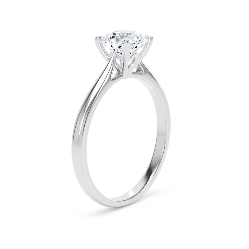 A round brilliant cut diamond is set with four, talon claws at the heart of this ring. The highly polished split, swept shoulders taper towards the setting to let the 0.75ct diamond do all the talking! The result is a classical engagement ring with a timeless design.