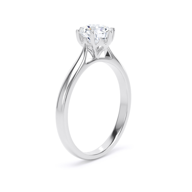 The secure, six claw setting makes this ring the ideal choice for someone with an active lifestyle. The highly polished split, swept shoulders taper towards the setting to let the 0.75ct diamond do all the talking!