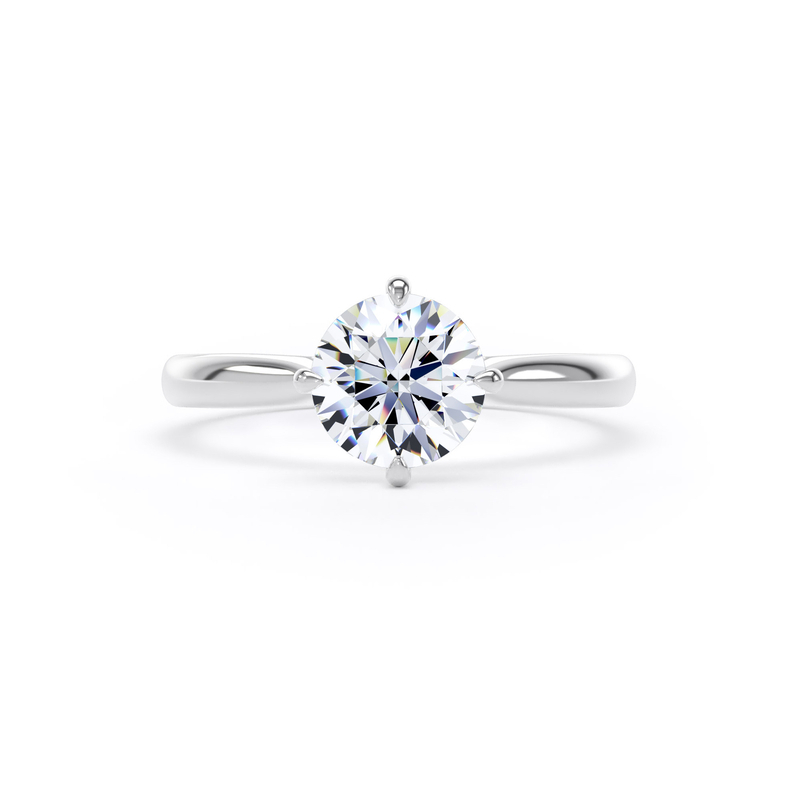 The round brilliant cut diamond is set in a four claw setting with striking talon claws. The claws are set at North, South, East, West orientation.
