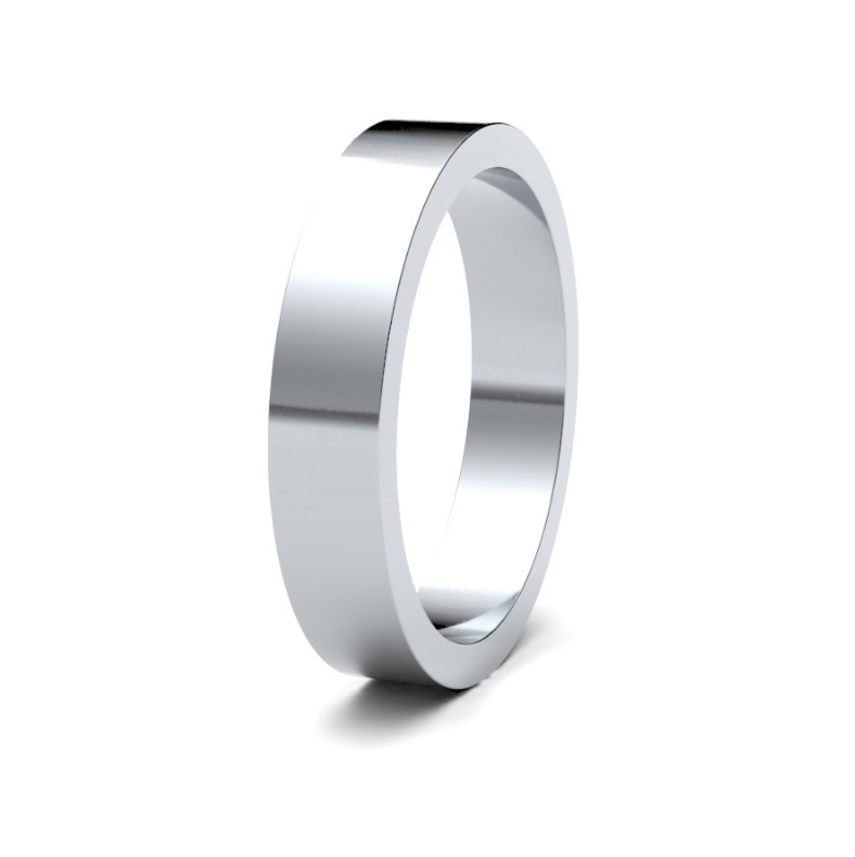Made to last a lifetime, this 4mm wide, flat profile wedding ring with highly polished finish offers a sleek and modern design.