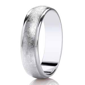 The bright, brushed satin finish in the centre of the ring gives a textural element likened to a frosty winters landscape. By contrast, the highly polished edges of this ring make for a design that is both modern and stylish.