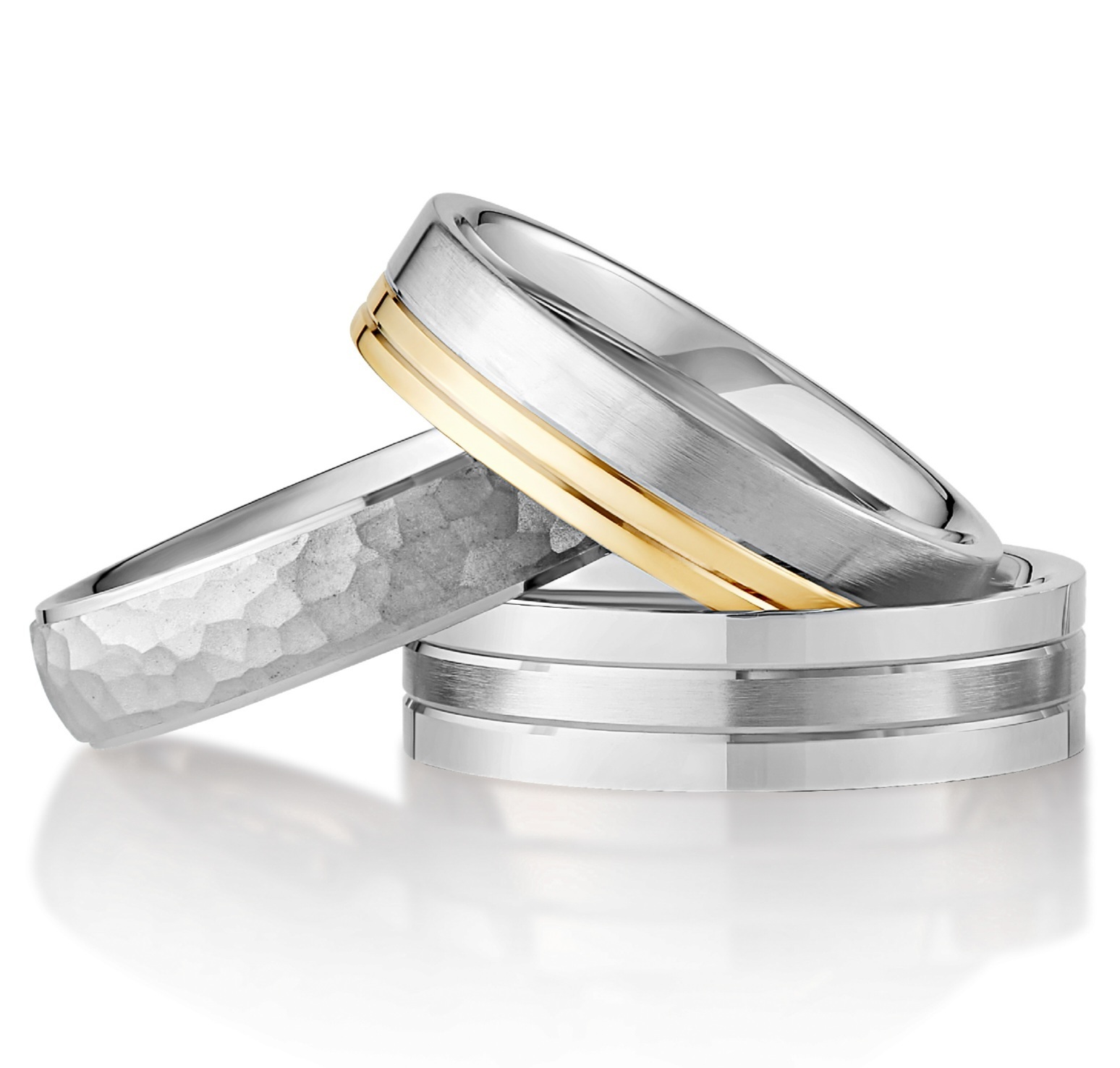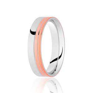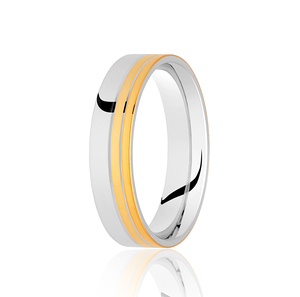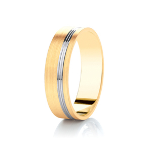 Made to last a lifetime, this 6mm wide, flat profile wedding ring has diamond cut detailing. The two tracks in contrasting colours make an impact whilst the understated, brushed satin finish of this flat profile ring makes for a design that is sleek and sophisticated.