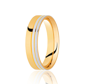 18ct 6mm TWO COLOUR diamond cut two track flat court ring