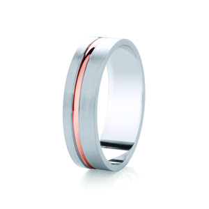 The contemporary flat profile ring is finished with a brushed, satin finish whilst the off-centre channel can be finished to your preferences; either with the same elegant brushed satin finish, or with a contrasting, highly polished finish to make your chosen colour POP!