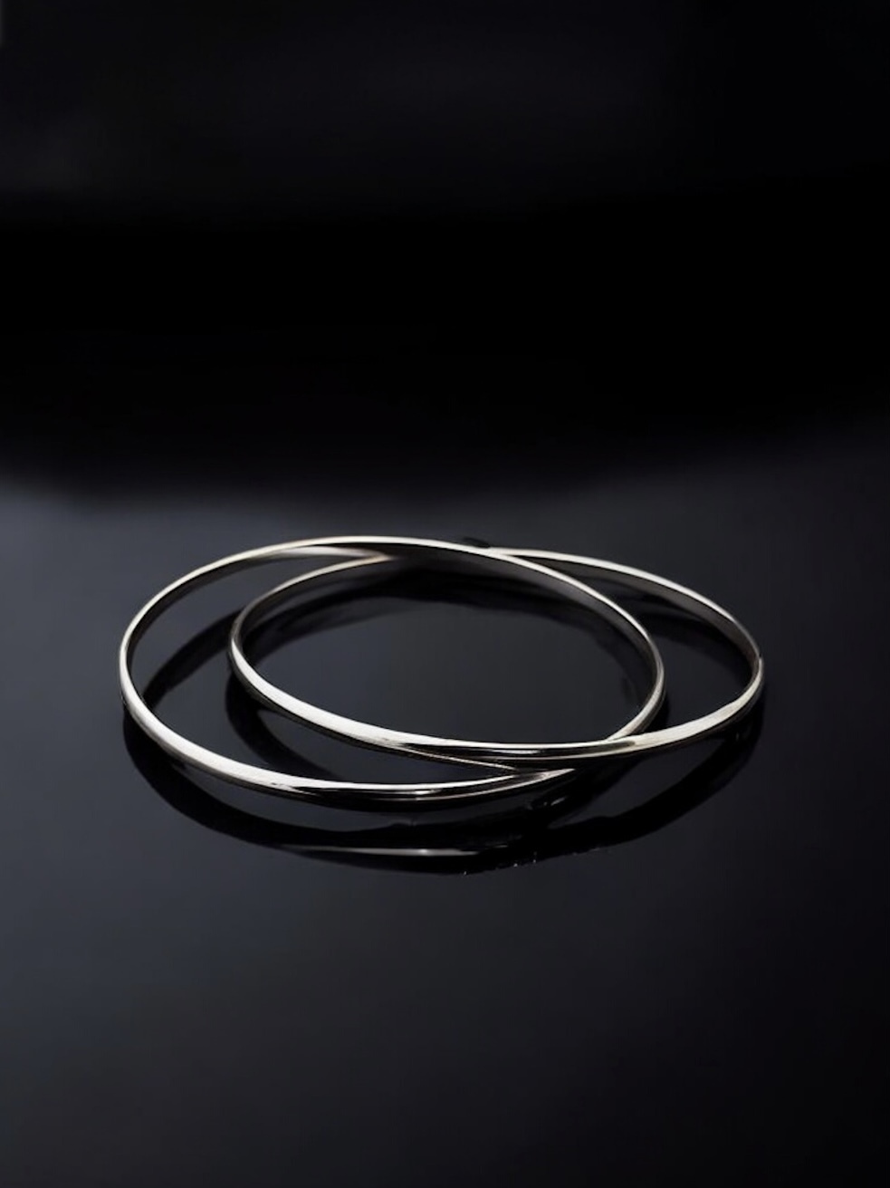 Each bangle measures approximately 3mm wide by 1.8mm deep with a D-shape profile.