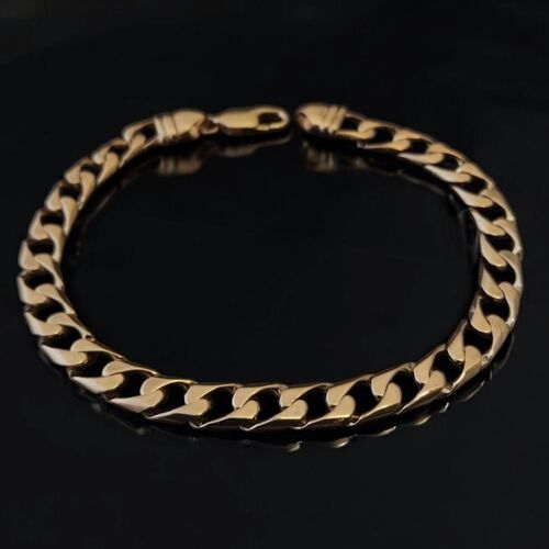 This solid, 9ct yellow gold curb bracelet is a timeless…