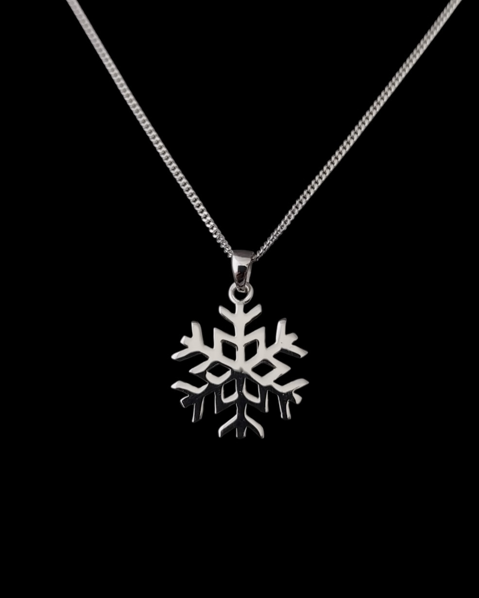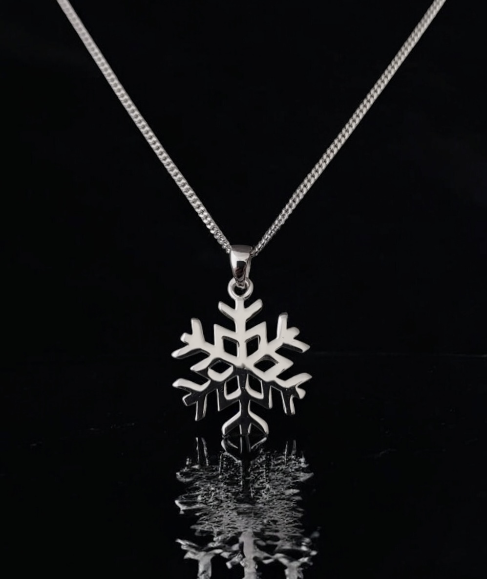 This sterling silver snowflake pendant is perfect for pairing with cosy jumpers during the winter months. Shop the complimentary snowflake stud earrings to complete the look!